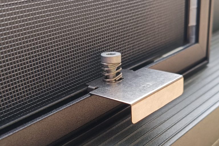 Patte en Inox qui d'apporte une meilleure résistance aux intempéries et un système de verrouillage avec ressort en Zamak afin d'assurer le clipsage du cadre sur le dormant